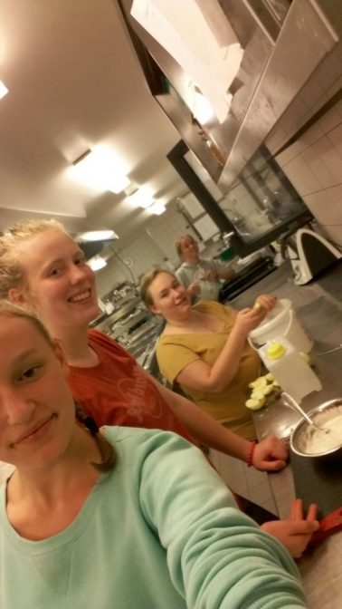Wir haben uns freitagsabends getroffen und am Samstagmorgen damit begonnen, unsere Bierzeltgarnituren zu renovieren. Zudem haben wir unseren Lagersong fertiggestellt und die letzten Vorbereitungen für unsere Spiele getroffen, unter anderem für das Tohuwabohu und unseren Bastelnachmittag. Ebenfalls wurde altes Material aus dem Zeltlager ausgemistet. Am Samstagabend haben wir noch gemeinsam in der Wern’s Mühle Flammkuchen, die wir selbst in der Küche des Restaurants gemacht haben, gegessen.